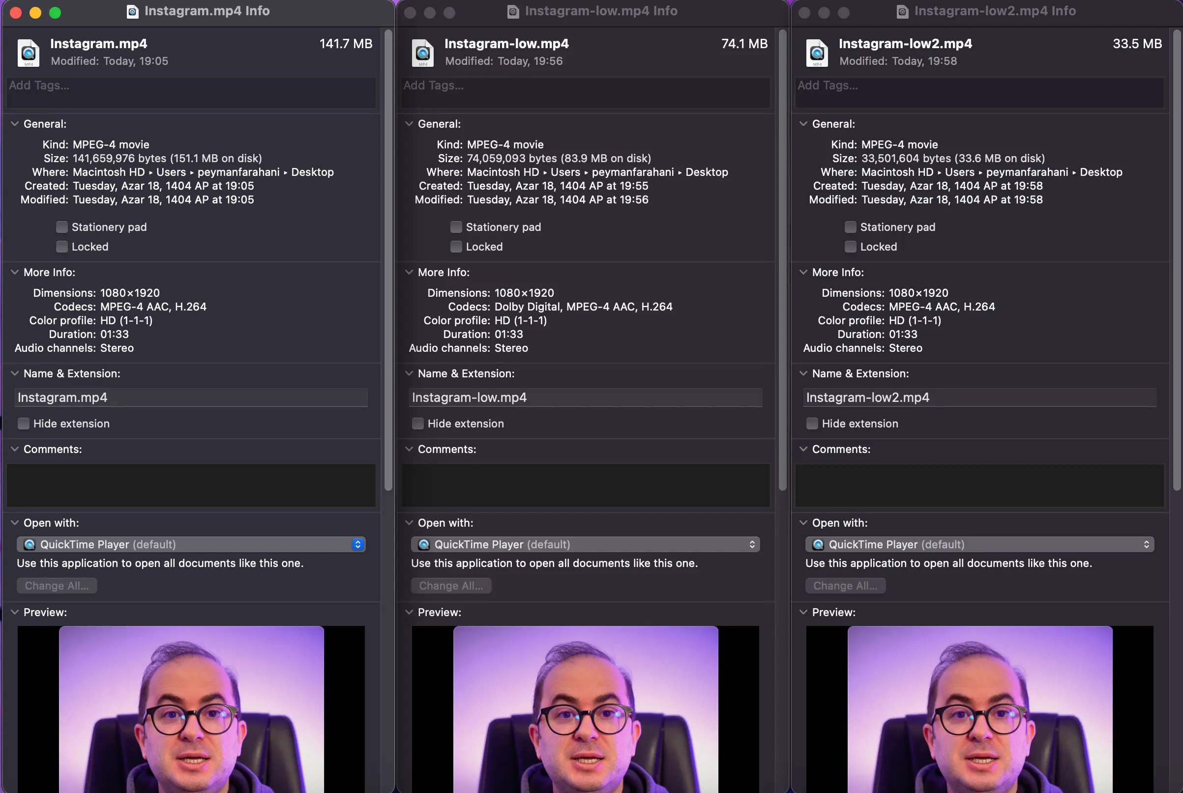 دقیقا چیزی که ما لازم داریم همین هست که حجم ویدئوها رو بتونیم پایین بیاریم با حداقل افت کیفیت که دیدی قابل انجام هست. حالا بریم ببینیم چطوری میشه اینکارو کرد.
