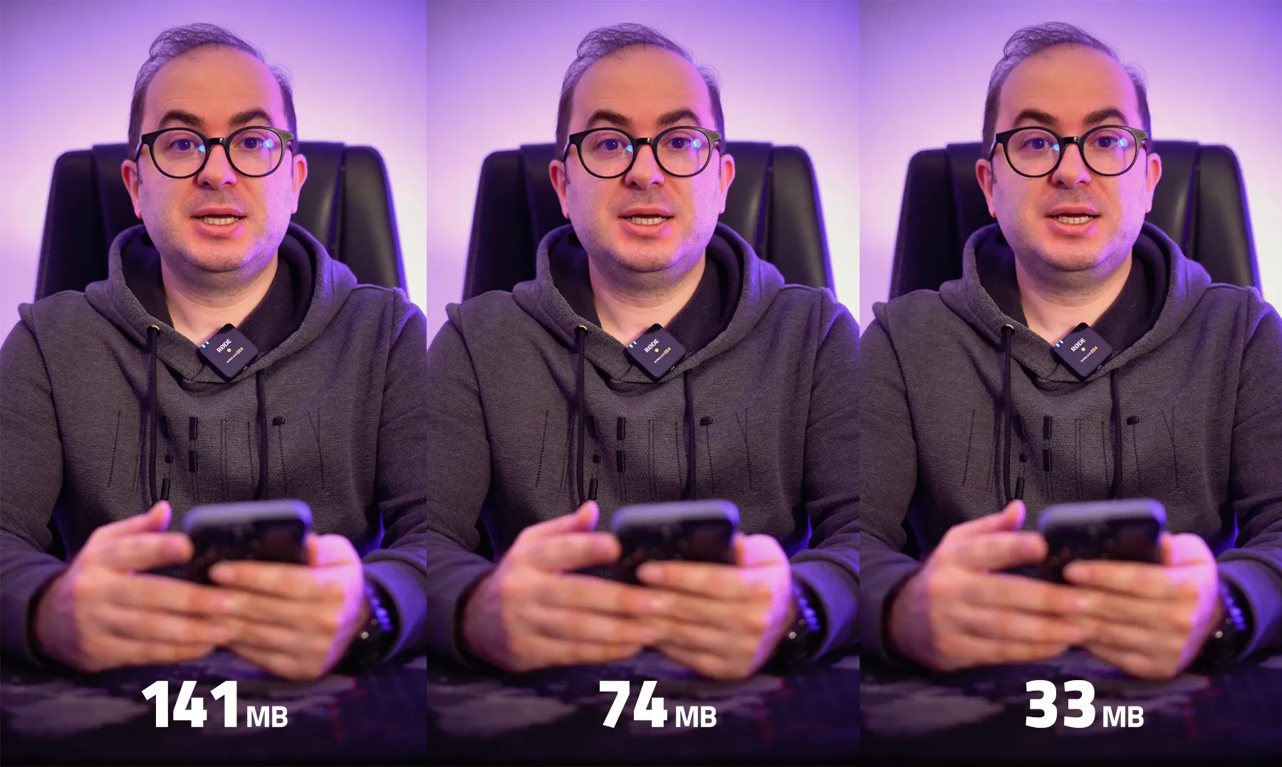 شاید بگی نمیشه حجم رو بدون افت کیفیت پایین آورد، برای اینکه بدونی راههایی برای انجام این کار وجود داره این ۳ تا تصویر زیر رو ببین. اینها اسکرینشاتهایی از یه ویدئو با ۳ کیفیت مختلف هست. کیفیت اول که خروجی مستقیم کپ کات هست ۱۴۱ مگابایته که یه کمی بهینهتر شده و به ۷۴ مگابایت رسیده و با یه کمی بهینهتر شدن به ۳۳ مگابایت رسیده یعنی حجمی تقریبا ۱/۴ ویدئو اصلی اما کیفیت فقط شاید ۵ تا ۱۰ درصد کمتر شده باشه که اگر خیلی زوم نکنی هم متوجهش نمیشی.